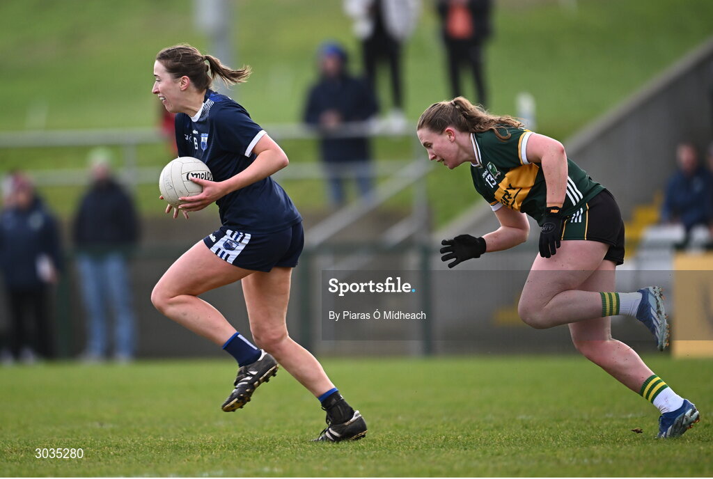 3 February 2025; Karen McGrath of Waterford gets away from Siofra O'Shea of Kerry during the 2025 Lidl Ladies National Football League Division 1 match between Waterford and Kerry at SETU Waterford in Carriganore, Waterford. Photo by Piaras Ó Mídheach/Sportsfile
