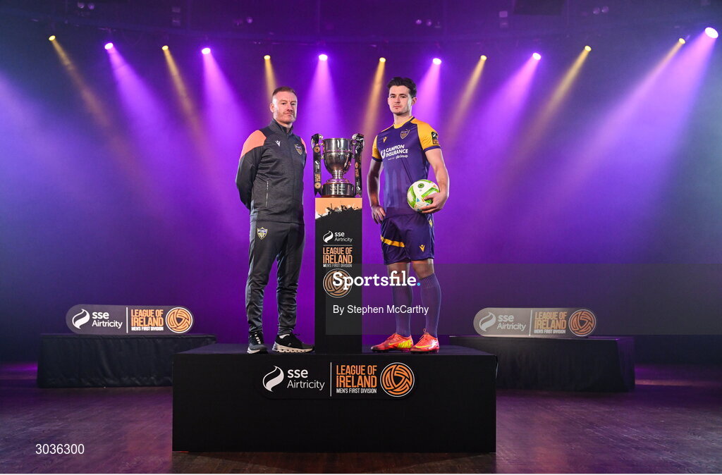 5 February 2025; Wexford manager Stephen Elliott and Aaron Dobbs of Wexford during the SSE Airtricity Men’s Premier Division, SSE Airtricity Men’s First Division and SSE Airtricity Women’s Premier Division Launch 2025 at Mansion House in Dublin. Photo by Stephen McCarthy/Sportsfile