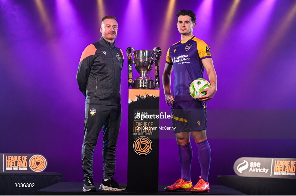 5 February 2025; Wexford manager Stephen Elliott and Aaron Dobbs of Wexford during the SSE Airtricity Men’s Premier Division, SSE Airtricity Men’s First Division and SSE Airtricity Women’s Premier Division Launch 2025 at Mansion House in Dublin. Photo by Stephen McCarthy/Sportsfile