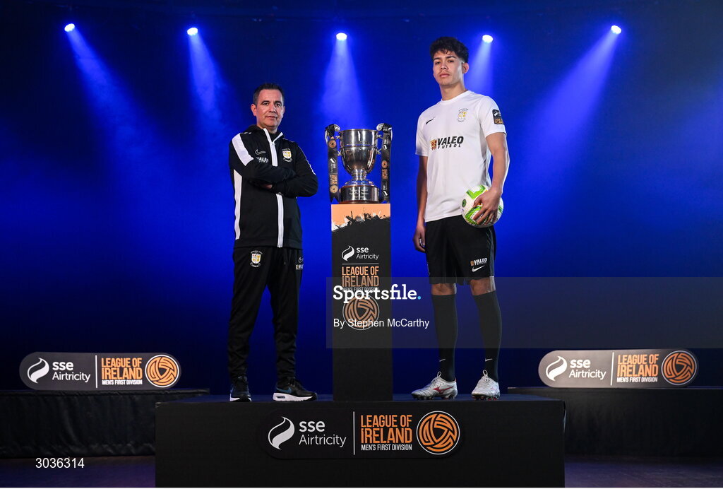 5 February 2025; Athlone Town manager Dario Castelo and German Fuentes Rodriguez of Athlone Town during the SSE Airtricity Men’s Premier Division, SSE Airtricity Men’s First Division and SSE Airtricity Women’s Premier Division Launch 2025 at Mansion House in Dublin. Photo by Stephen McCarthy/Sportsfile