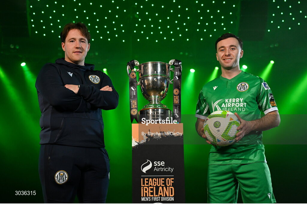 5 February 2025; Kerry manager Conor McCarthy and Sean McGrath of Kerry during the SSE Airtricity Men’s Premier Division, SSE Airtricity Men’s First Division and SSE Airtricity Women’s Premier Division Launch 2025 at Mansion House in Dublin. Photo by Stephen McCarthy/Sportsfile