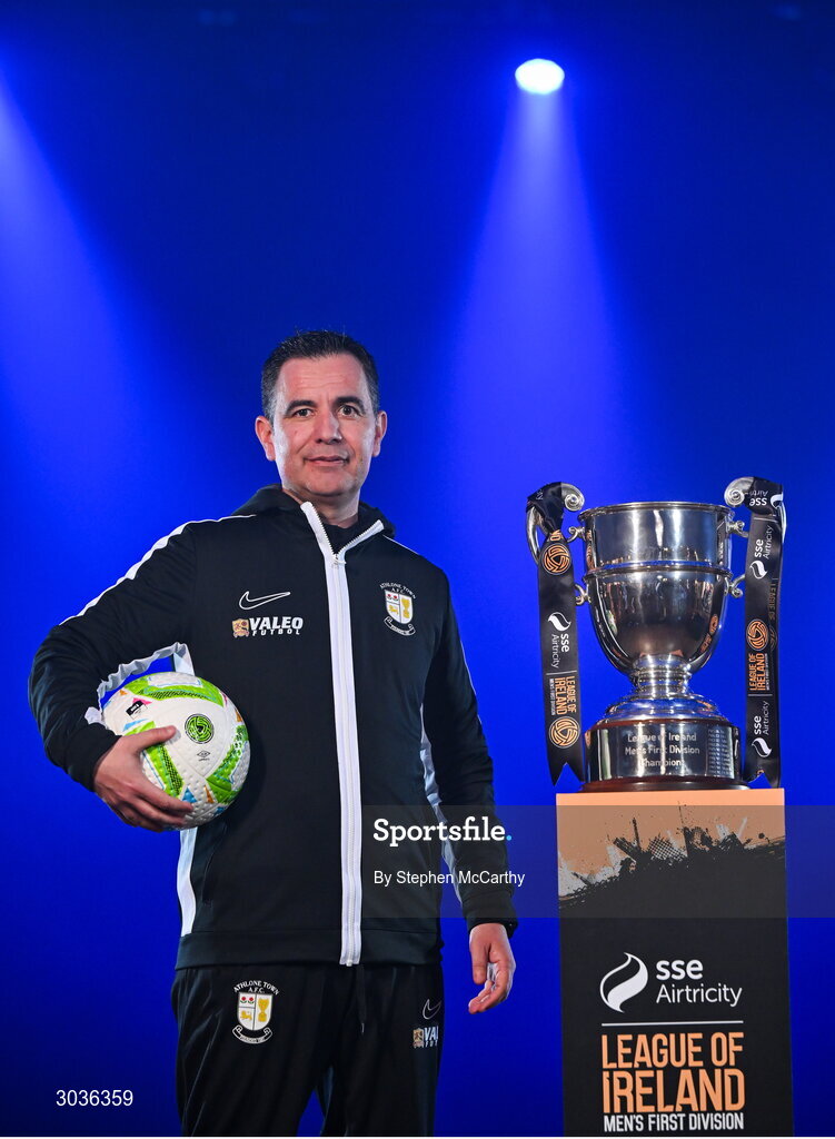 5 February 2025; Athlone Town manager Dario Castelo during the SSE Airtricity Men’s Premier Division, SSE Airtricity Men’s First Division and SSE Airtricity Women’s Premier Division Launch 2025 at Mansion House in Dublin. Photo by Stephen McCarthy/Sportsfile