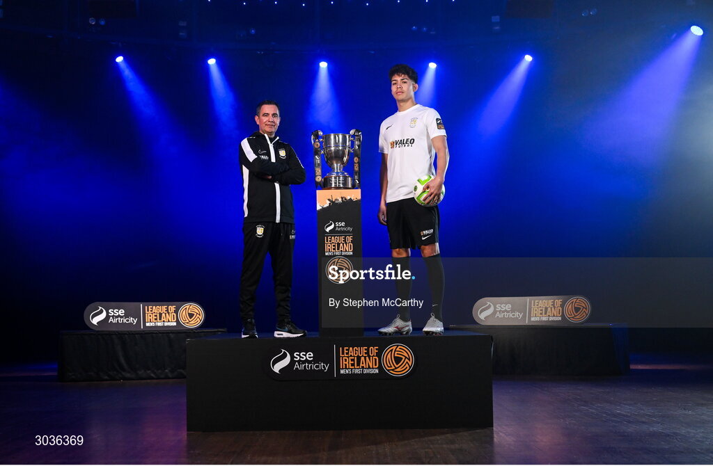 5 February 2025; Athlone Town manager Dario Castelo and German Fuentes Rodriguez of Athlone Town during the SSE Airtricity Men’s Premier Division, SSE Airtricity Men’s First Division and SSE Airtricity Women’s Premier Division Launch 2025 at Mansion House in Dublin. Photo by Stephen McCarthy/Sportsfile