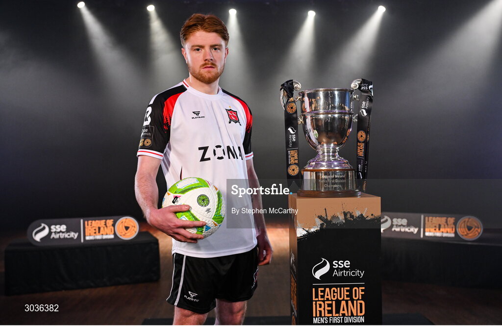 5 February 2025; Aodh Dervin of Dundalk during the SSE Airtricity Men’s Premier Division, SSE Airtricity Men’s First Division and SSE Airtricity Women’s Premier Division Launch 2025 at Mansion House in Dublin. Photo by Stephen McCarthy/Sportsfile