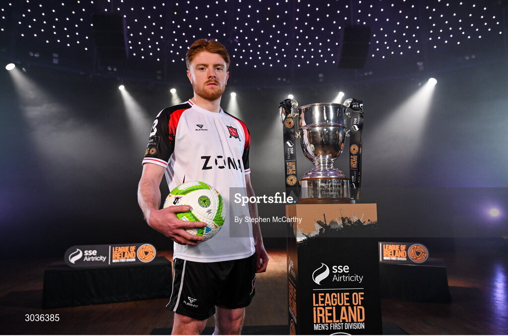 5 February 2025; Aodh Dervin of Dundalk during the SSE Airtricity Men’s Premier Division, SSE Airtricity Men’s First Division and SSE Airtricity Women’s Premier Division Launch 2025 at Mansion House in Dublin. Photo by Stephen McCarthy/Sportsfile