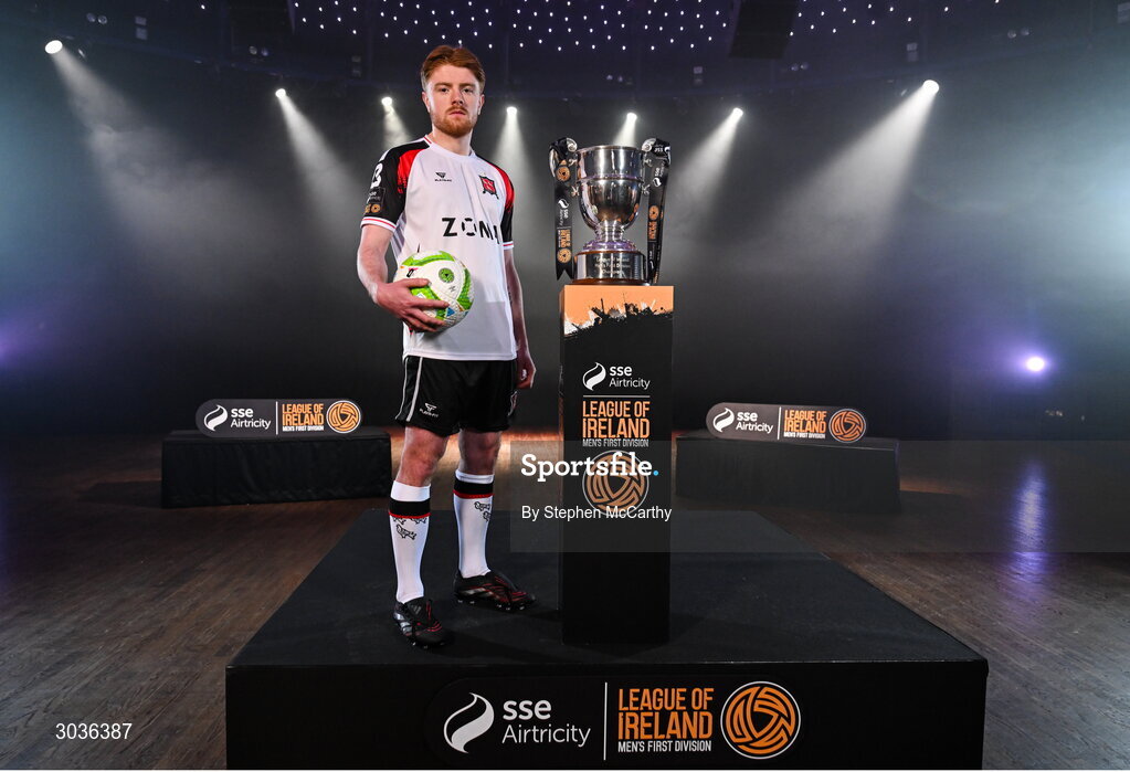 5 February 2025; Aodh Dervin of Dundalk during the SSE Airtricity Men’s Premier Division, SSE Airtricity Men’s First Division and SSE Airtricity Women’s Premier Division Launch 2025 at Mansion House in Dublin. Photo by Stephen McCarthy/Sportsfile