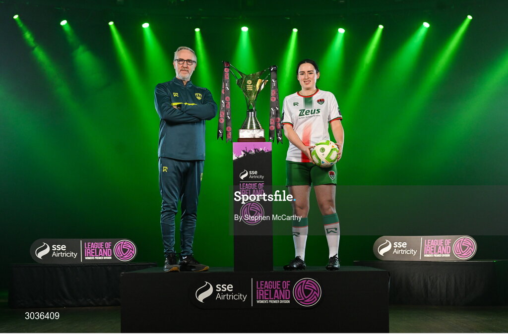 5 February 2025; Cork City manager Frank Kelleher and Ciara McNamara of Cork City during the SSE Airtricity Men’s Premier Division, SSE Airtricity Men’s First Division and SSE Airtricity Women’s Premier Division Launch 2025 at Mansion House in Dublin. Photo by Stephen McCarthy/Sportsfile