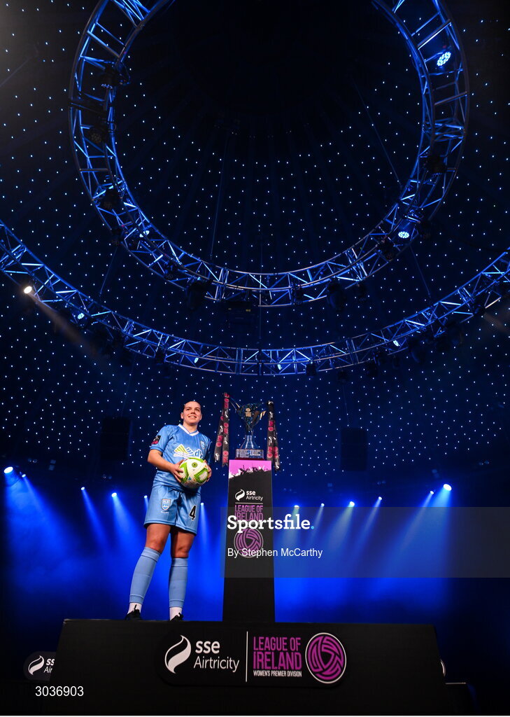 5 February 2025; Keelin Dodd of DLR Waves during the SSE Airtricity Men’s Premier Division, SSE Airtricity Men’s First Division and SSE Airtricity Women’s Premier Division Launch 2025 at Mansion House in Dublin. Photo by Stephen McCarthy/Sportsfile