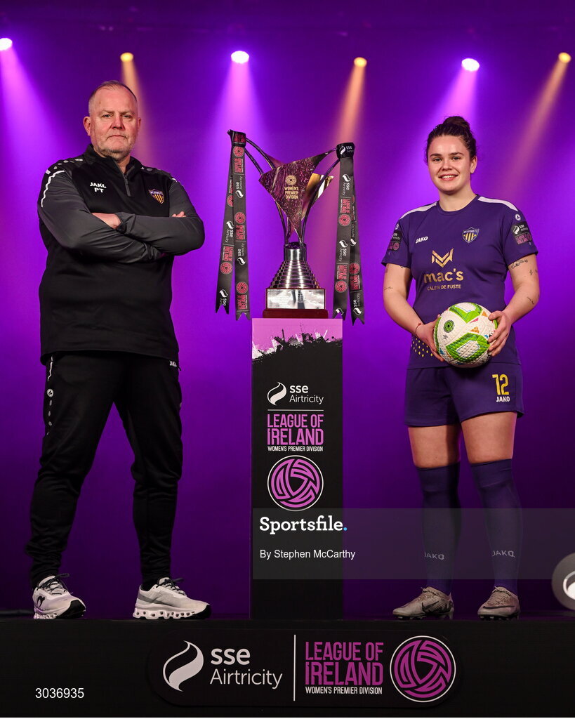5 February 2025; Wexford goalkeeping coach Pat Trehy and Ciara Rossiter of Wexford during the SSE Airtricity Men’s Premier Division, SSE Airtricity Men’s First Division and SSE Airtricity Women’s Premier Division Launch 2025 at Mansion House in Dublin. Photo by Stephen McCarthy/Sportsfile