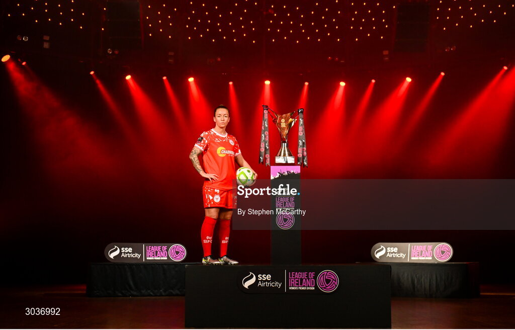 5 February 2025; Pearl Slattery of Shelbourne during the SSE Airtricity Men’s Premier Division, SSE Airtricity Men’s First Division and SSE Airtricity Women’s Premier Division Launch 2025 at Mansion House in Dublin. Photo by Stephen McCarthy/Sportsfile
