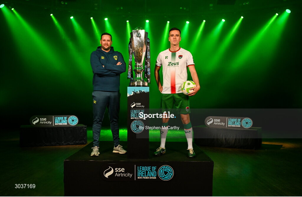 5 February 2025; Cork City manager Tim Clancy and Charlie Lyons of Cork City during the SSE Airtricity Men’s Premier Division, SSE Airtricity Men’s First Division and SSE Airtricity Women’s Premier Division Launch 2025 at Mansion House in Dublin. Photo by Stephen McCarthy/Sportsfile
