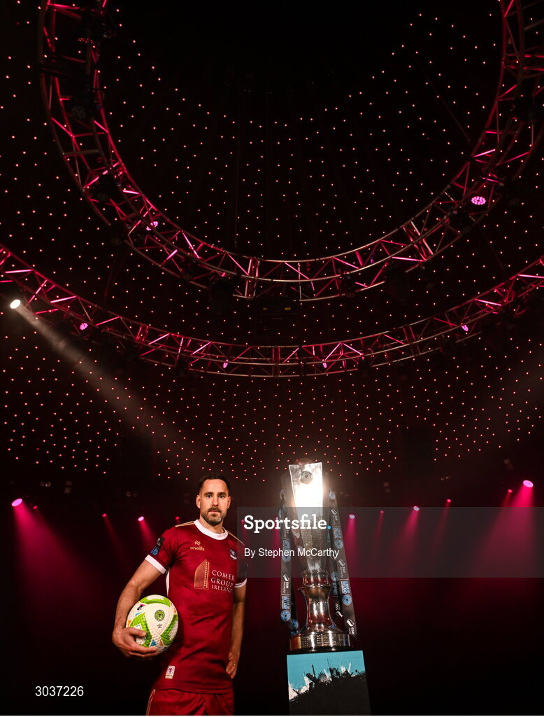 5 February 2025; Greg Cunningham of Galway United during the SSE Airtricity Men’s Premier Division, SSE Airtricity Men’s First Division and SSE Airtricity Women’s Premier Division Launch 2025 at Mansion House in Dublin. Photo by Stephen McCarthy/Sportsfile