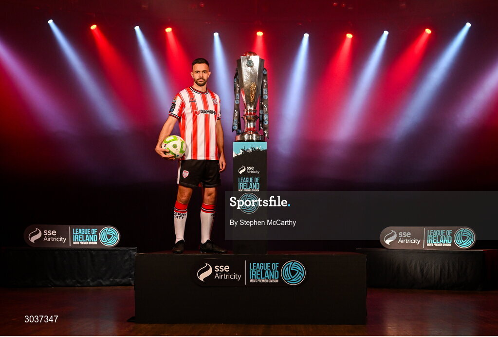 5 February 2025; Robbie Benson of Derry City during the SSE Airtricity Men’s Premier Division, SSE Airtricity Men’s First Division and SSE Airtricity Women’s Premier Division Launch 2025 at Mansion House in Dublin. Photo by Stephen McCarthy/Sportsfile
