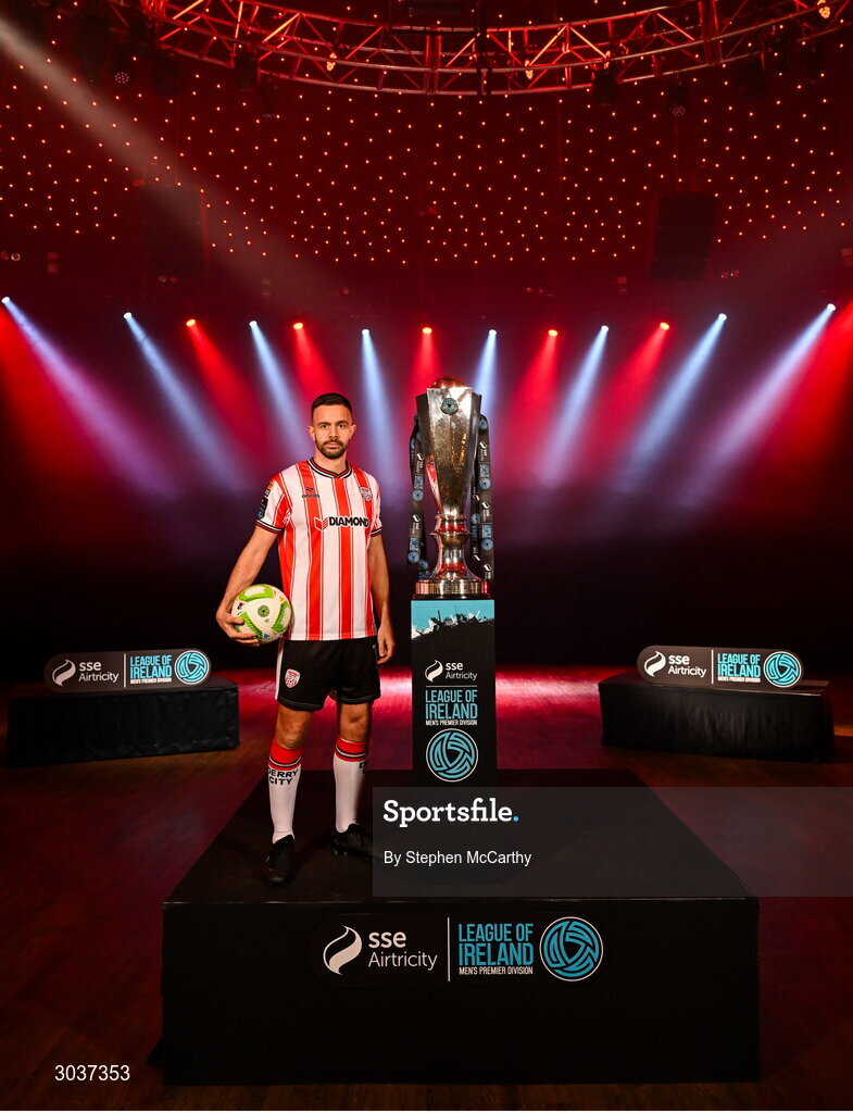 5 February 2025; Robbie Benson of Derry City during the SSE Airtricity Men’s Premier Division, SSE Airtricity Men’s First Division and SSE Airtricity Women’s Premier Division Launch 2025 at Mansion House in Dublin. Photo by Stephen McCarthy/Sportsfile