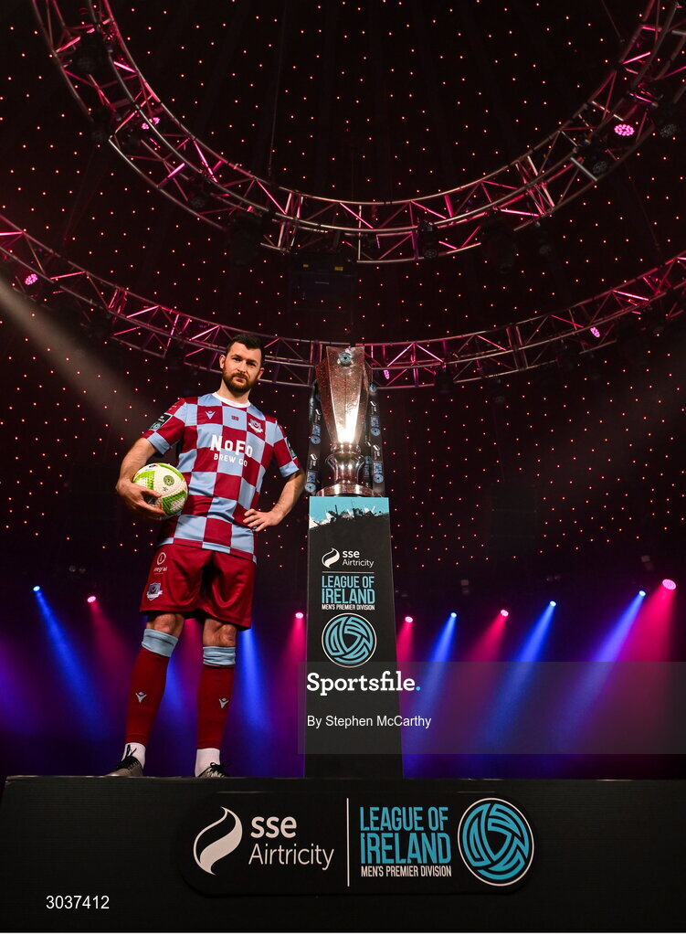 5 February 2025; Ryan Brennan of Drogheda United during the SSE Airtricity Men’s Premier Division, SSE Airtricity Men’s First Division and SSE Airtricity Women’s Premier Division Launch 2025 at Mansion House in Dublin. Photo by Stephen McCarthy/Sportsfile
