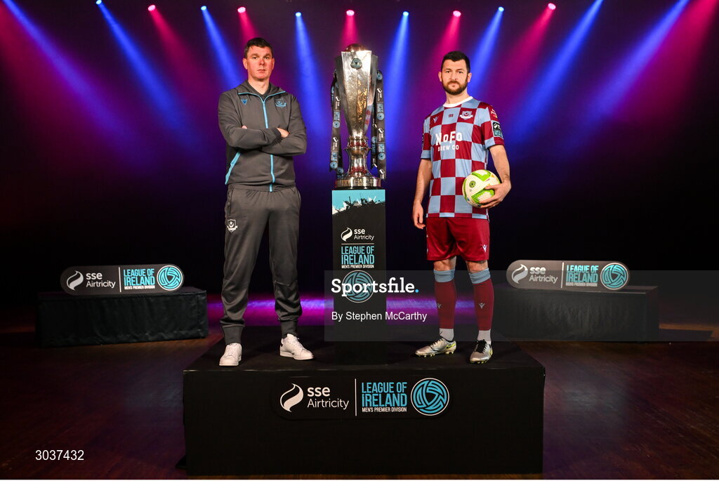 5 February 2025; Drogheda United manager Kevin Doherty and Ryan Brennan of Drogheda United during the SSE Airtricity Men’s Premier Division, SSE Airtricity Men’s First Division and SSE Airtricity Women’s Premier Division Launch 2025 at Mansion House in Dublin. Photo by Stephen McCarthy/Sportsfile