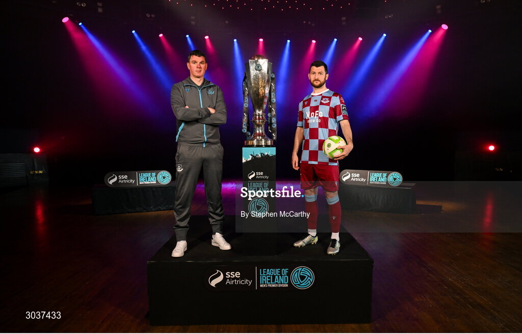 5 February 2025; Drogheda United manager Kevin Doherty and Ryan Brennan of Drogheda United during the SSE Airtricity Men’s Premier Division, SSE Airtricity Men’s First Division and SSE Airtricity Women’s Premier Division Launch 2025 at Mansion House in Dublin. Photo by Stephen McCarthy/Sportsfile