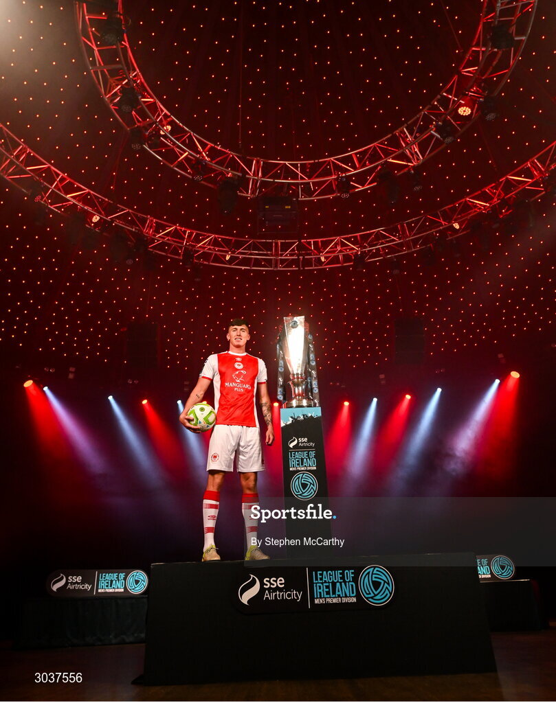 5 February 2025; Joe Redmond of St Patrick's Athletic during the SSE Airtricity Men’s Premier Division, SSE Airtricity Men’s First Division and SSE Airtricity Women’s Premier Division Launch 2025 at Mansion House in Dublin. Photo by Stephen McCarthy/Sportsfile