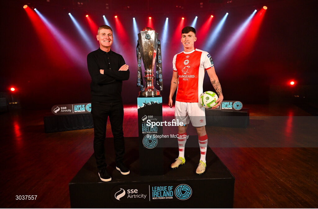 5 February 2025; St Patrick's Athletic manager Stephen Kenny and Joe Redmond of St Patrick's Athletic during the SSE Airtricity Men’s Premier Division, SSE Airtricity Men’s First Division and SSE Airtricity Women’s Premier Division Launch 2025 at Mansion House in Dublin. Photo by Stephen McCarthy/Sportsfile