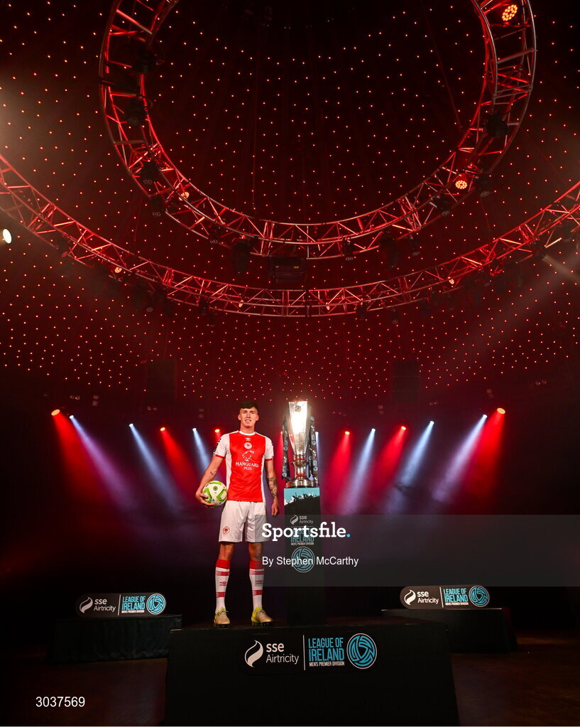 5 February 2025; Joe Redmond of St Patrick's Athletic during the SSE Airtricity Men’s Premier Division, SSE Airtricity Men’s First Division and SSE Airtricity Women’s Premier Division Launch 2025 at Mansion House in Dublin. Photo by Stephen McCarthy/Sportsfile