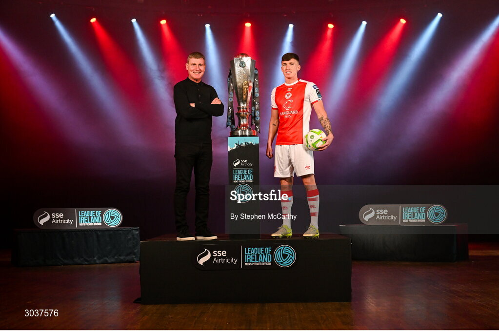 5 February 2025; St Patrick's Athletic manager Stephen Kenny and Joe Redmond of St Patrick's Athletic during the SSE Airtricity Men’s Premier Division, SSE Airtricity Men’s First Division and SSE Airtricity Women’s Premier Division Launch 2025 at Mansion House in Dublin. Photo by Stephen McCarthy/Sportsfile