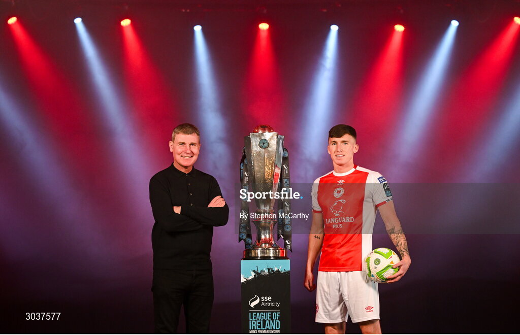 5 February 2025; St Patrick's Athletic manager Stephen Kenny and Joe Redmond of St Patrick's Athletic during the SSE Airtricity Men’s Premier Division, SSE Airtricity Men’s First Division and SSE Airtricity Women’s Premier Division Launch 2025 at Mansion House in Dublin. Photo by Stephen McCarthy/Sportsfile