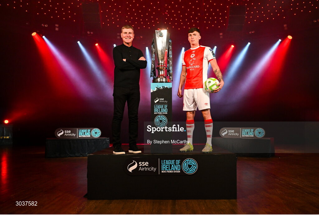 5 February 2025; St Patrick's Athletic manager Stephen Kenny and Joe Redmond of St Patrick's Athletic during the SSE Airtricity Men’s Premier Division, SSE Airtricity Men’s First Division and SSE Airtricity Women’s Premier Division Launch 2025 at Mansion House in Dublin. Photo by Stephen McCarthy/Sportsfile