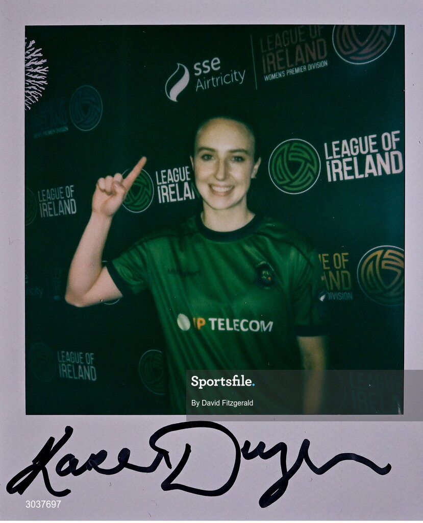 5 February 2025; A polaroid photo of Karen Duggan of Peamount United during the SSE Airtricity Men’s Premier Division, SSE Airtricity Men’s First Division and SSE Airtricity Women’s Premier Division Launch 2025 at Mansion House in Dublin. Photo by David Fitzgerald/Sportsfile
