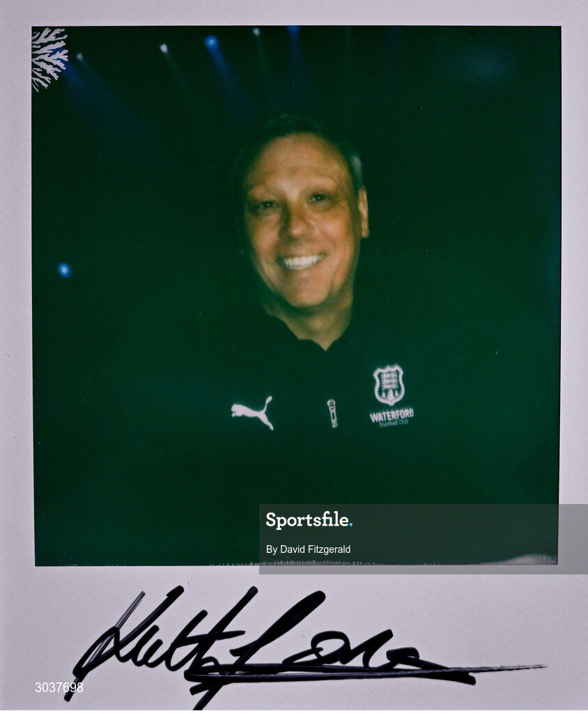 5 February 2025; A polaroid photo of Waterford manager Keith Long during the SSE Airtricity Men’s Premier Division, SSE Airtricity Men’s First Division and SSE Airtricity Women’s Premier Division Launch 2025 at Mansion House in Dublin. Photo by David Fitzgerald/Sportsfile