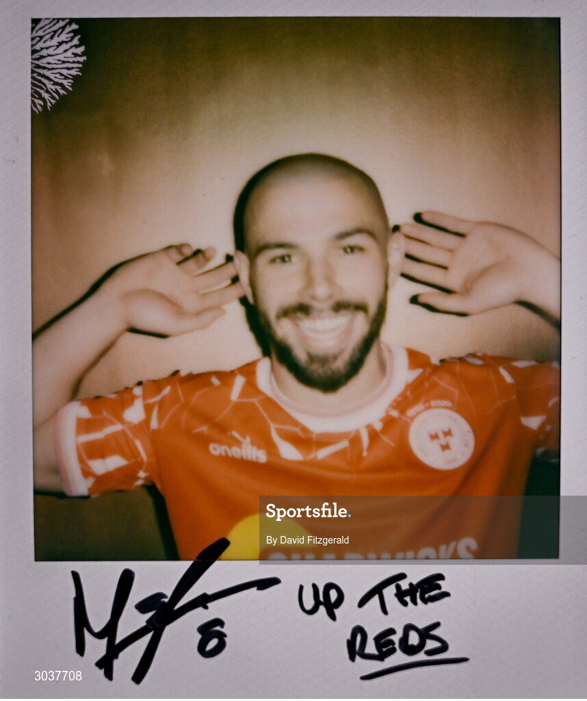 5 February 2025; A polaroid photo of Mark Coyle of Shelbourne during the SSE Airtricity Men’s Premier Division, SSE Airtricity Men’s First Division and SSE Airtricity Women’s Premier Division Launch 2025 at Mansion House in Dublin. Photo by David Fitzgerald/Sportsfile