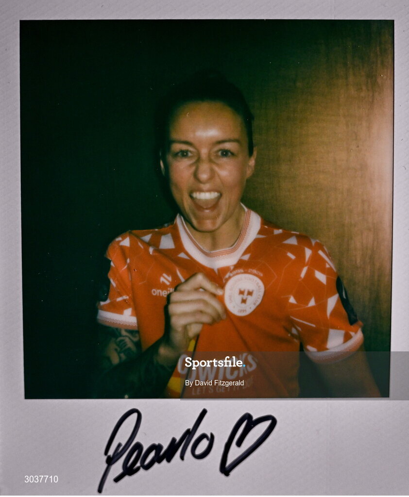 5 February 2025; A polaroid photo of Pearl Slattery of Shelbourne women during the SSE Airtricity Men’s Premier Division, SSE Airtricity Men’s First Division and SSE Airtricity Women’s Premier Division Launch 2025 at Mansion House in Dublin. Photo by David Fitzgerald/Sportsfile