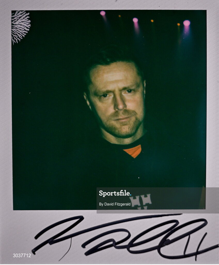 5 February 2025; A polaroid photo of Shelbourne manager Damien Duff during the SSE Airtricity Men’s Premier Division, SSE Airtricity Men’s First Division and SSE Airtricity Women’s Premier Division Launch 2025 at Mansion House in Dublin. Photo by David Fitzgerald/Sportsfile