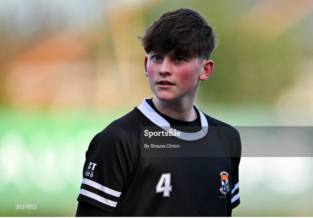 4 February 2025; Evan Groves of Newbridge College after the Bank of Ireland Leinster Rugby Boys Schools Junior Cup First Round match between Newbridge College and Presentation College, Bray at Energia Park in Dublin. Photo by Shauna Clinton/Sportsfile