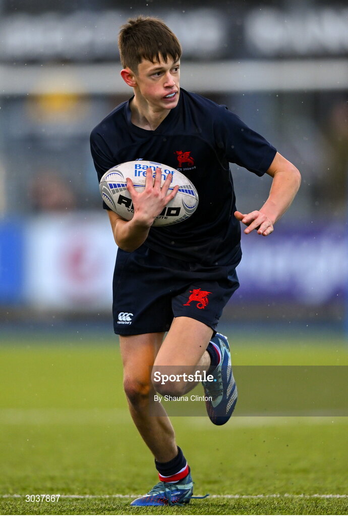 4 February 2025; Matthew Dignam of Wesley College during the Bank of Ireland Leinster Rugby Boys Schools Junior Cup First Round match between Wesley College and Gonzaga College at Energia Park in Dublin. Photo by Shauna Clinton/Sportsfile