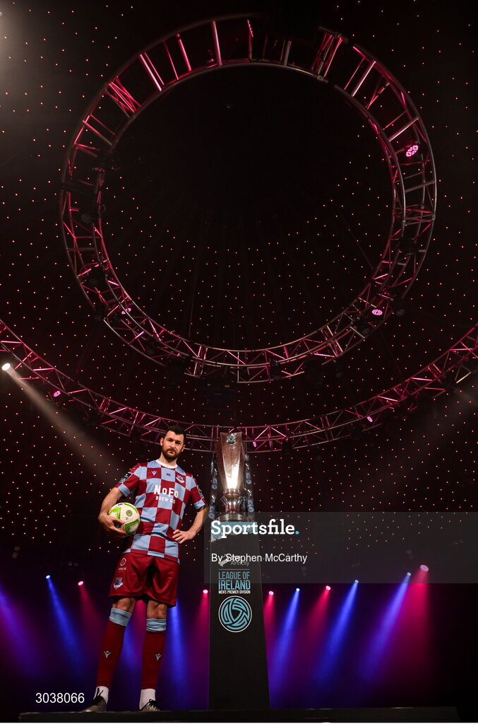 5 February 2025; Ryan Brennan of Drogheda United during the SSE Airtricity Men’s Premier Division, SSE Airtricity Men’s First Division and SSE Airtricity Women’s Premier Division Launch 2025 at Mansion House in Dublin. Photo by Stephen McCarthy/Sportsfile