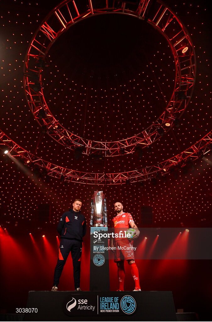 5 February 2025; Shelbourne manager Damien Duff and Mark Coyle during the SSE Airtricity Men’s Premier Division, SSE Airtricity Men’s First Division and SSE Airtricity Women’s Premier Division Launch 2025 at Mansion House in Dublin. Photo by Stephen McCarthy/Sportsfile