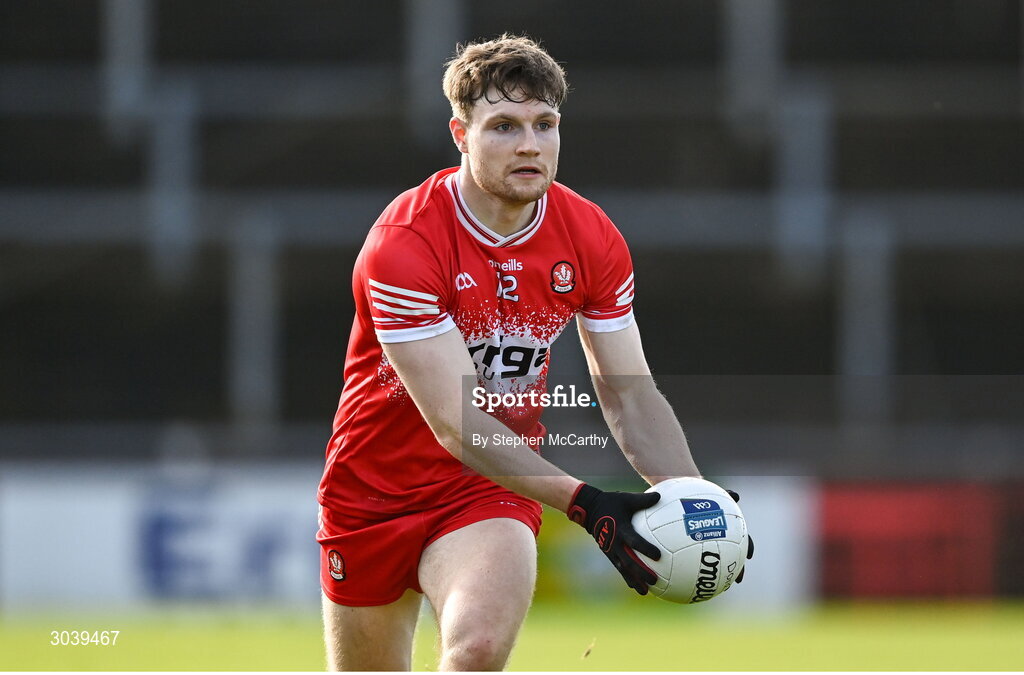 2 February 2025; Ethan Doherty of Derry during the Allianz Football League Division 1 match between Derry and Kerry at Celtic Park in Derry. Photo by Stephen McCarthy/Sportsfile