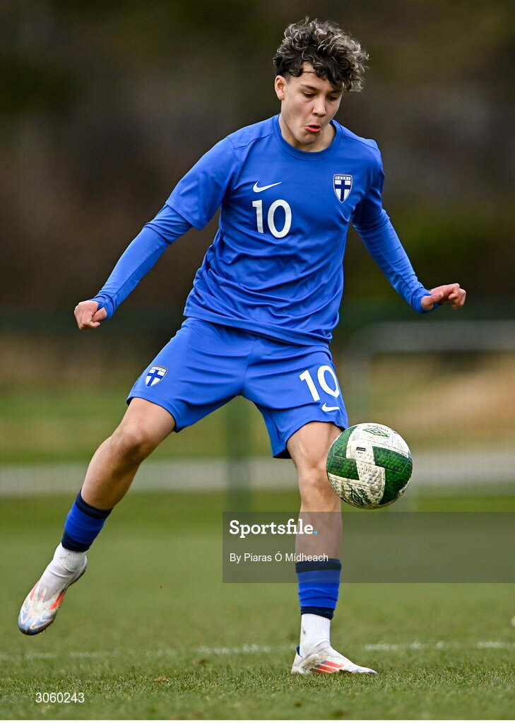 28 February 2025; Aaron Korkala of Finland during the U16 Boys International Friendly match between Repubic of Ireland and Finland at the FAI National Training Centre in Abbotstown, Dublin. Photo by Piaras Ó Mídheach/Sportsfile