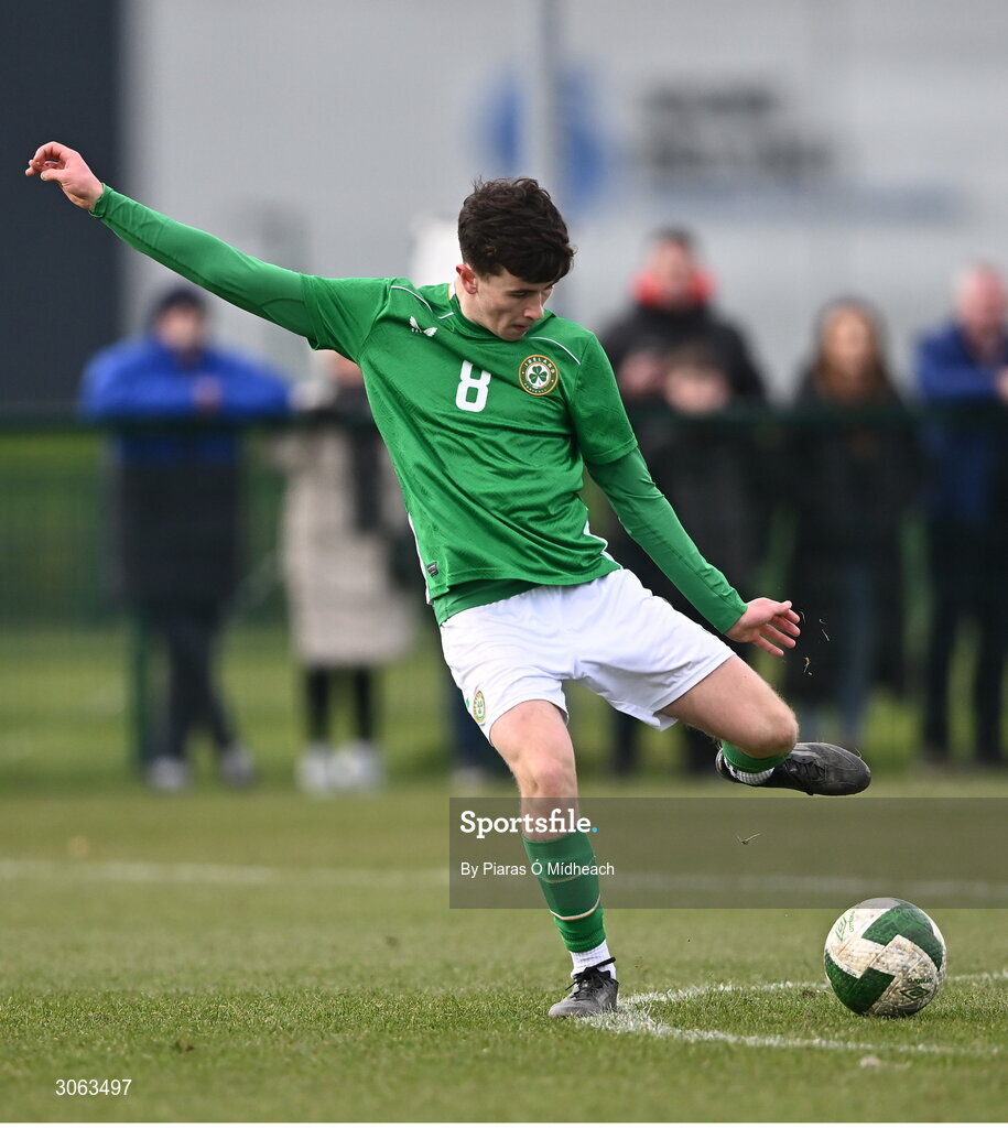 28 February 2025; Niall Sullivan of Republic of Ireland during the U16 Boys International Friendly match between Repubic of Ireland and Finland at the FAI National Training Centre in Abbotstown, Dublin. Photo by Piaras Ó Mídheach/Sportsfile