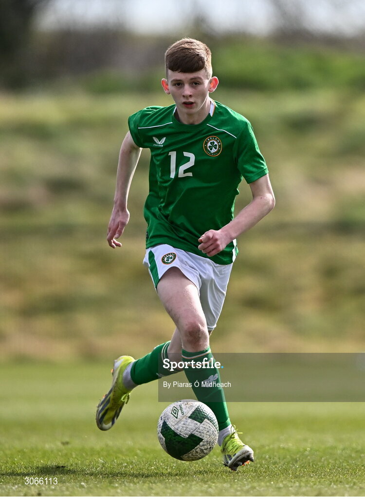 28 February 2025; Danny Burke of Republic of Ireland during the U16 Boys International Friendly match between Repubic of Ireland and Finland at the FAI National Training Centre in Abbotstown, Dublin. Photo by Piaras Ó Mídheach/Sportsfile