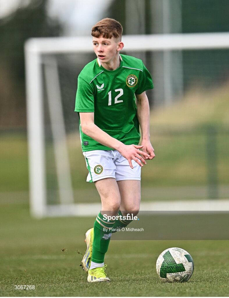 28 February 2025; Danny Burke of Republic of Ireland during the U16 Boys International Friendly match between Repubic of Ireland and Finland at the FAI National Training Centre in Abbotstown, Dublin. Photo by Piaras Ó Mídheach/Sportsfile
