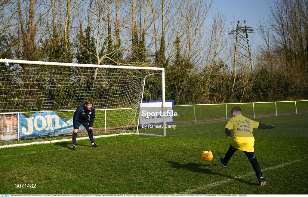 11 March 2025; Paint the Town Yellow: Damien Duff joins cancer patient Oscar Walsh at AUL Complex in Dublin, in encouraging the Irish public to go all in for Daffodil Day on Friday, March 28th. This Daffodil Day the Irish Cancer Society urgently needs your support to provide free services for cancer patients. Without you these vital services simply wouldn’t exist. Visit cancer.ie/daffodilday for more information. Photo by Ramsey Cardy/Sportsfile