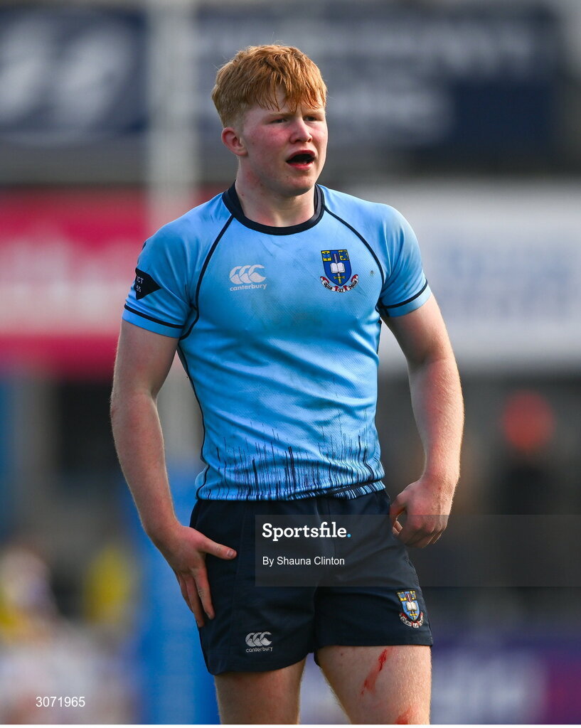 10 March 2025; Harry McCafferty of St Michael's College during the Bank of Ireland Leinster Rugby Boys Schools Junior Cup semi-final match between St Michael's College and Clongowes Wood College at Energia Park in Dublin. Photo by Shauna Clinton/Sportsfile