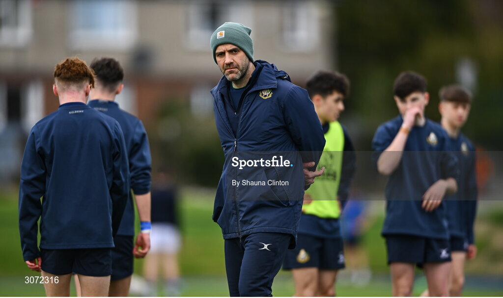 11 March 2025; St Vincent's Castleknock College head coach Sam Boriss the Bank of Ireland Leinster Rugby Boys Schools Junior Cup semi-final match between Blackrock College and St Vincent's Castleknock College at Energia Park in Dublin. Photo by Shauna Clinton/Sportsfile