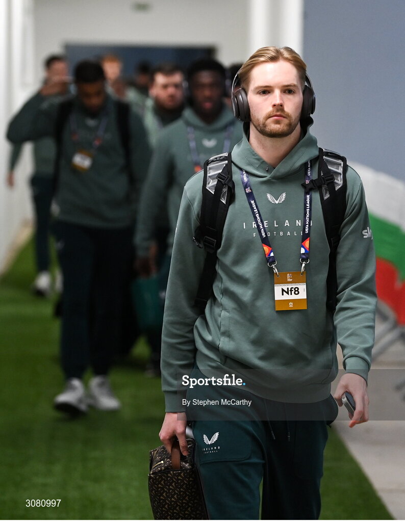 20 March 2025; Republic of Ireland goalkeeper Caoimhin Kelleher arrives before the UEFA Nations League B/C Play-off 1st Leg match between Bulgaria and Republic of Ireland at Hristo Botev Stadium in Plovdiv, Bulgaria. Photo by Stephen McCarthy/Sportsfile