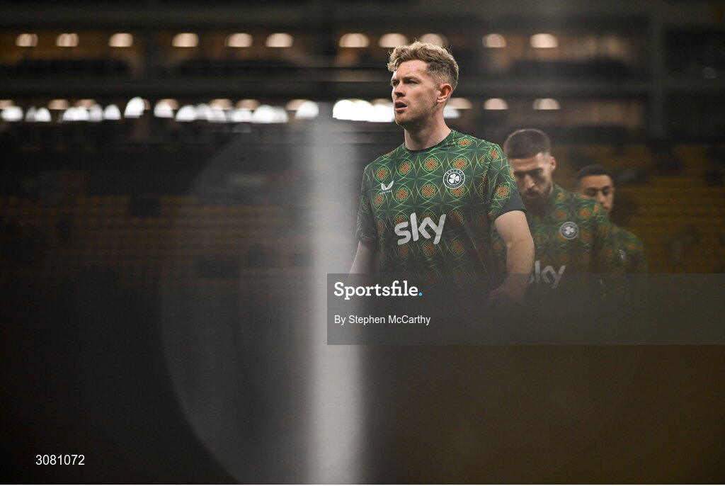 20 March 2025; Nathan Collins of Republic of Ireland before the UEFA Nations League B/C Play-off 1st Leg match between Bulgaria and Republic of Ireland at Hristo Botev Stadium in Plovdiv, Bulgaria. Photo by Stephen McCarthy/Sportsfile