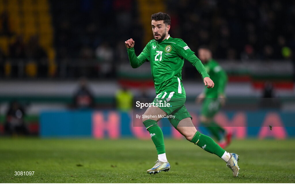 20 March 2025; Mikey Johnston of Republic of Ireland during the UEFA Nations League B/C Play-off 1st Leg match between Bulgaria and Republic of Ireland at Hristo Botev Stadium in Plovdiv, Bulgaria. Photo by Stephen McCarthy/Sportsfile