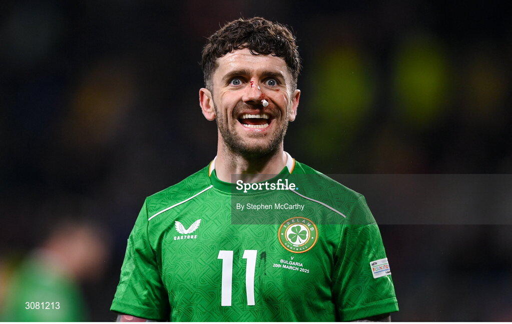 20 March 2025; Robbie Brady of Republic of Ireland during the UEFA Nations League B/C Play-off 1st Leg match between Bulgaria and Republic of Ireland at Hristo Botev Stadium in Plovdiv, Bulgaria. Photo by Stephen McCarthy/Sportsfile
