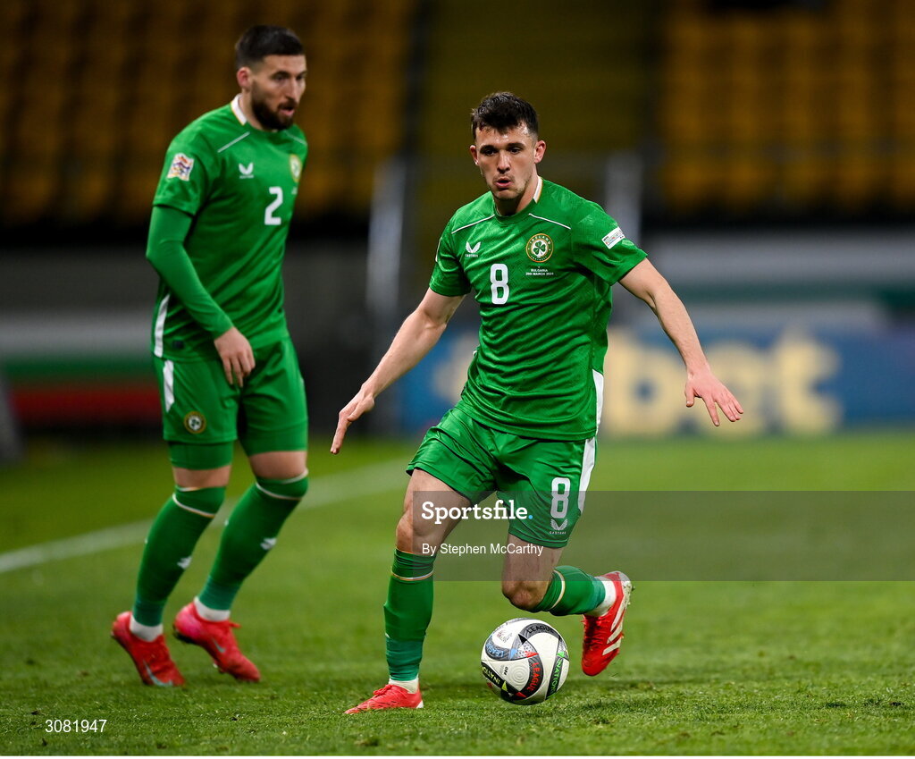 20 March 2025; Jason Knight of Republic of Ireland during the UEFA Nations League B/C Play-off 1st Leg match between Bulgaria and Republic of Ireland at Hristo Botev Stadium in Plovdiv, Bulgaria. Photo by Stephen McCarthy/Sportsfile