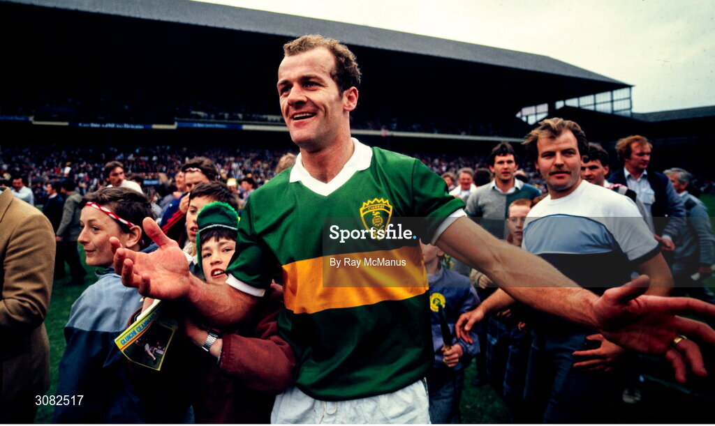 21 September 1986; Jack O'Shea of Kerry celebrates after their side's victory in the All-Ireland Senior Football Championship final between Tyrone and Kerry at Croke Park in Dublin. Photo by Ray McManus/Sportsfile